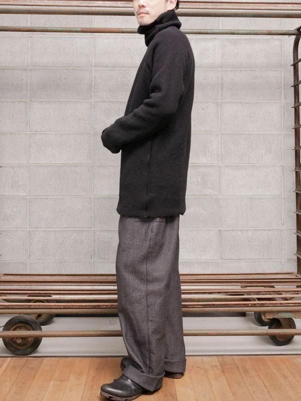 【WARE】 コットンヘリンボーンワイドイージーパンツ / BLACK